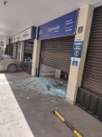 De acordo com a empresa, um homem invadiu a loja e causou diversos danos à estrutura. Ele quebrou portas de vidro e danificou equipamentos internos, comprometendo o funcionamento da unidade.