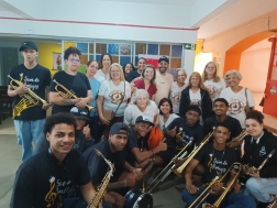 No último domingo, dia 23, a Associação de Voluntários Monsenhor Horta realizou mais uma tarde de convivência e animação no Lar Comunitário Santa Maria. A ação contou com a presença da Banda Sociedade Musical São Vicente de Paulo, que voluntariamente aceitou o convite e levou música e descontração aos idosos atendidos pela instituição.