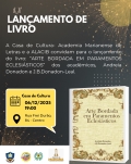 A Casa de Cultura – Academia Marianense de Letras, em parceria com a Editora Aldrava Letras e Artes e a ALACIB, realiza no dia 6 de dezembro de 2025, às 19h, o lançamento do livro “Arte Bordada em Paramentos Eclesiásticos”, assinado pelos escritores e acadêmicos Andreia Donadon e J.B. Donadon-Leal.