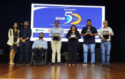 O SINE Ouro Preto foi homenageado pelo Governo de Minas durante o seminário que celebrou os 50 anos do Sistema Nacional de Emprego, realizado entre os dias 25 e 27 de novembro, em Belo Horizonte. O evento reuniu coordenadores e colaboradores de todo o estado, a convite da Secretaria de Desenvolvimento Social de Minas Gerais (Sedese).