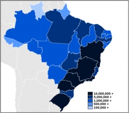 A estimativa mostra que os estados mais populosos são: São Paulo (46,65 milhões), Minas Gerais (21,41 milhões) e o Rio de Janeiro (17,46 milhões).