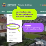 Todos os endereços físicos dos gabinetes dos vereadores são disponibilizados no site da Câmara. Acessando www.camarademariana.mg.gov.br, na aba Vereadores, os cidadãos podem ter acesso às informações referentes a seus mandatos parlamentares, currículos, endereço físico, e-mail, telefone e redes sociais.