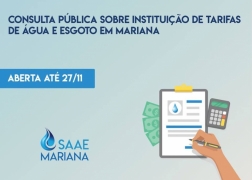Está aberta até o dia 27 de novembro de 2017 a Consulta Pública 07/2017 do Consórcio Intermunicipal de Saneamento Básico da Zona da Mata de Minas Gerais (CISAB ZM) sobre o estudo da tarifação do saneamento básico do município de Mariana.