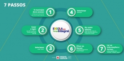 Após essa etapa, é preciso acessar, no canto inferior direito da tela, o botão vermelho e selecionar “Programas do MEC”. Em seguida, clicar no banner do Programa Escola em Tempo Integral, ler as informações da apresentação e clicar em avançar. Por fim, basta ler o termo de adesão e clicar em aderir.