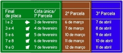 Os proprietários de veículos automotores em Minas Gerais devem estar atentos às datas para a quitação Imposto sobre Propriedade de Veículos Automotores (IPVA) neste ano. De acordo com calendário divulgado no final do mês passado pela Secretaria de Estado da Fazenda de Minas Gerais (SEF/MG), o pagamento da quota única ou da primeira parcela do tributo começa no próximo dia (03/02) e se estende até o dia 7 do mesmo mês, de acordo com o final da placa do veículo.
